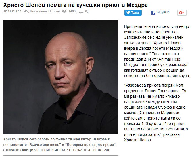 - HRISTO SHOPOV HELPS TO THE DOGS’ SHELTER IN MEZDRA. 12/November/2017 - 24 Часа