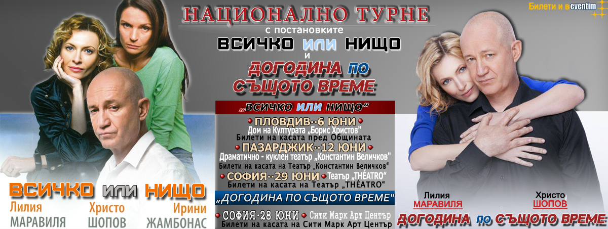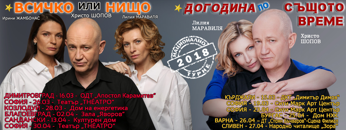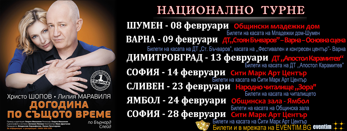 In May, the major cities of Bulgaria such as Plovdiv, Stara Zagora, VelikoTarnobo, Ruse and others, will be the hosts. The guest will be no other than the most recent project of Hristo and Lilia Maravilia: the piece ‘Same Time, Next Year’.