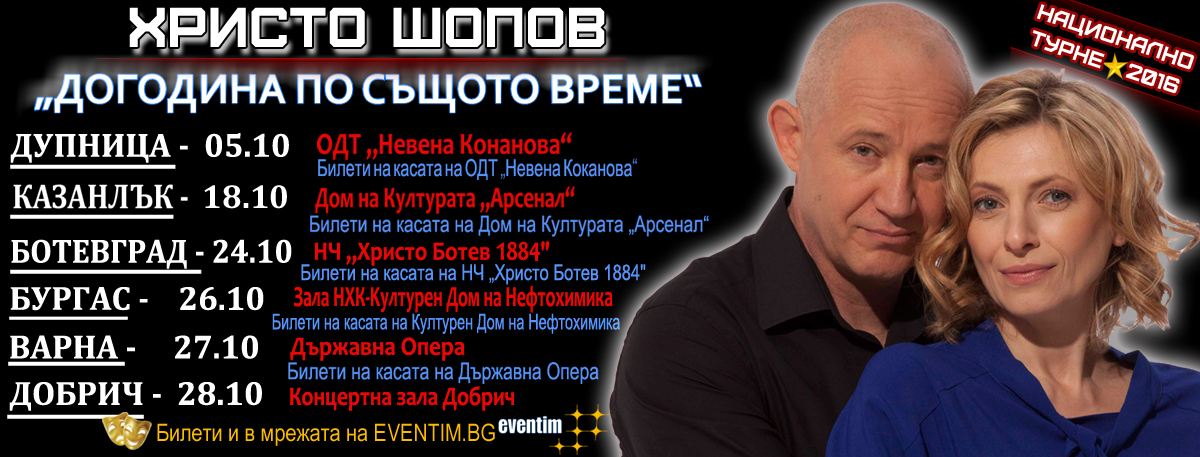 20.09.2016 - KIUSTENDIL - Obshtinki Teatar-Kiustendil („Bulgaria” 26А Blvd.) / Time: 19:00 On line on EVENTIM.bg